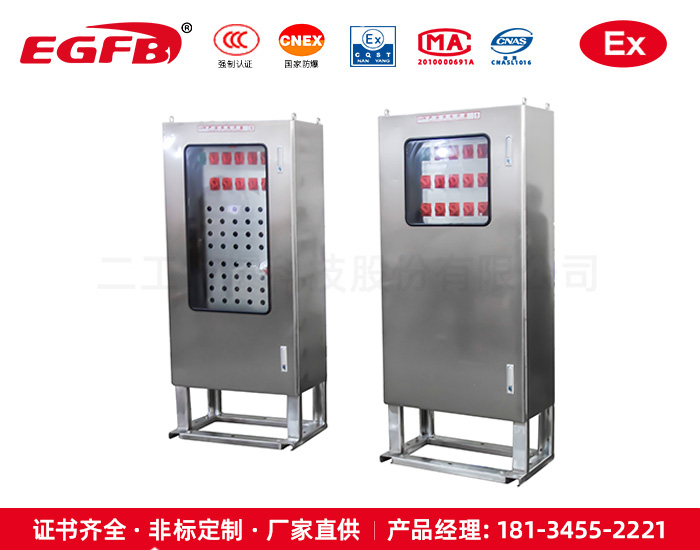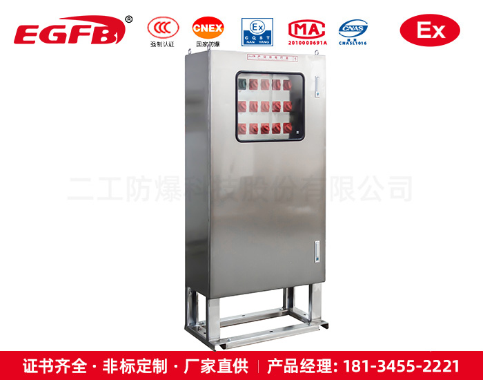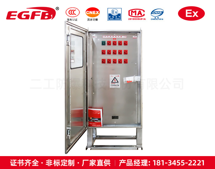 5.防爆配電箱內(nèi)可安裝:斷路器、交流接觸器、熱繼電器、變壓器、熔斷器、溫控儀數(shù)顯表、其他繼電器、變頻器、PLC等所有普通中低壓電器元件,對(duì)于客戶要求電器元件基本不受限制。門板安裝Ex防爆控制按鈕、信號(hào)燈、轉(zhuǎn)換開(kāi)關(guān)等。內(nèi)裝的斷路器可通過(guò)防爆箱蓋板上的手柄實(shí)現(xiàn)分合,動(dòng)作性能可靠,普通儀表通過(guò)防爆玻璃顯示,通過(guò)防爆導(dǎo)桿可實(shí)現(xiàn)箱外操作功能;