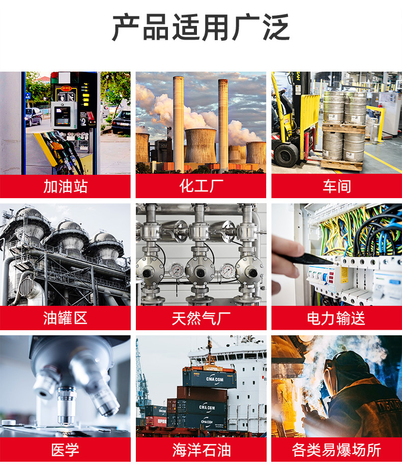 5.適用于石油石化、化工、釀酒、醫(yī)藥、油漆、紡織、印染、設(shè)施等爆炸性危險(xiǎn)環(huán)境;